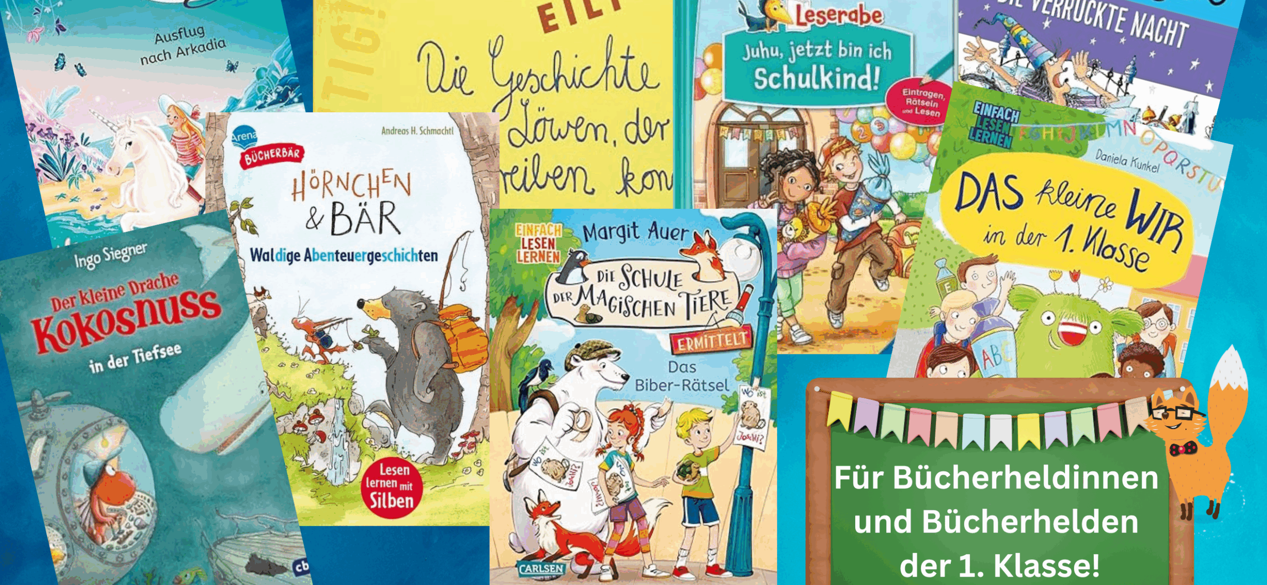 In wenigen Tagen geht die Schule los und viele Erstklässlerinnen und Erstklässler freuen sich darauf, lesen zu lernen. Für einen spannenden Lesestart sorgen Erstlesebücher, die die Erstklässler*innen motivieren, aber nicht überfordern. In unserer Bücherkiste finden Sie Empfehlungen für die kleinen Bücherheldinnen und Bücherhelden der 1. Klasse. Zusätzlich können Sie den Stundenplan mit den Bücherheldinnen und Bücherhelden kostenlos unter den Downloads herunterladen. So macht Schule gleich noch viel mehr Spaß!