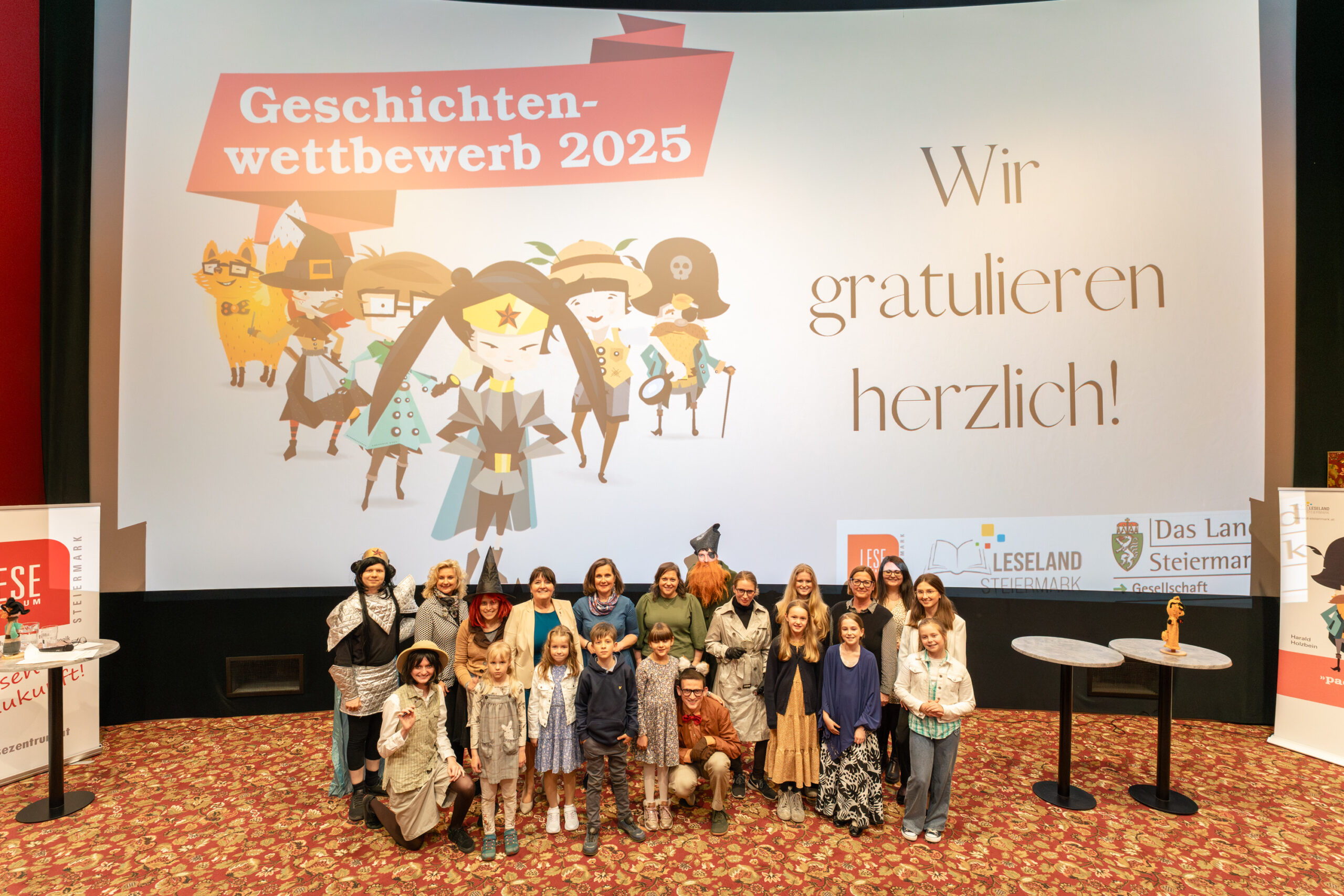 Am 25. April 2025 fand die Preisverleihung zum Geschichtenwettbewerb 2025 im Dieselkino Lieboch statt. Landeshauptmann-Stellvertreterin Manuela Khom überreichte persönlich den stolzen Gewinnerinnen und Gewinner die tollen Preise: Gutscheine für zwei Übernachtungen für die ganze Familie in einem der sponsernden ZWEI & MEHR-Vorteilsbetrieben. Den Sonderpreis sponserte die Steiermärkische Sparkasse in Form eines Logenplatzes für eine ganze Familie für eine Kindervorführung in der Grazer Oper!