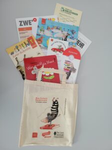 Die „Buchstart Steiermark“-Tasche beinhaltet das Pappbilderbuch „Was macht die Maus?“ von Helga Bansch, Materialien zur Leseförderung und Infobroschüren des Landes Steiermark.