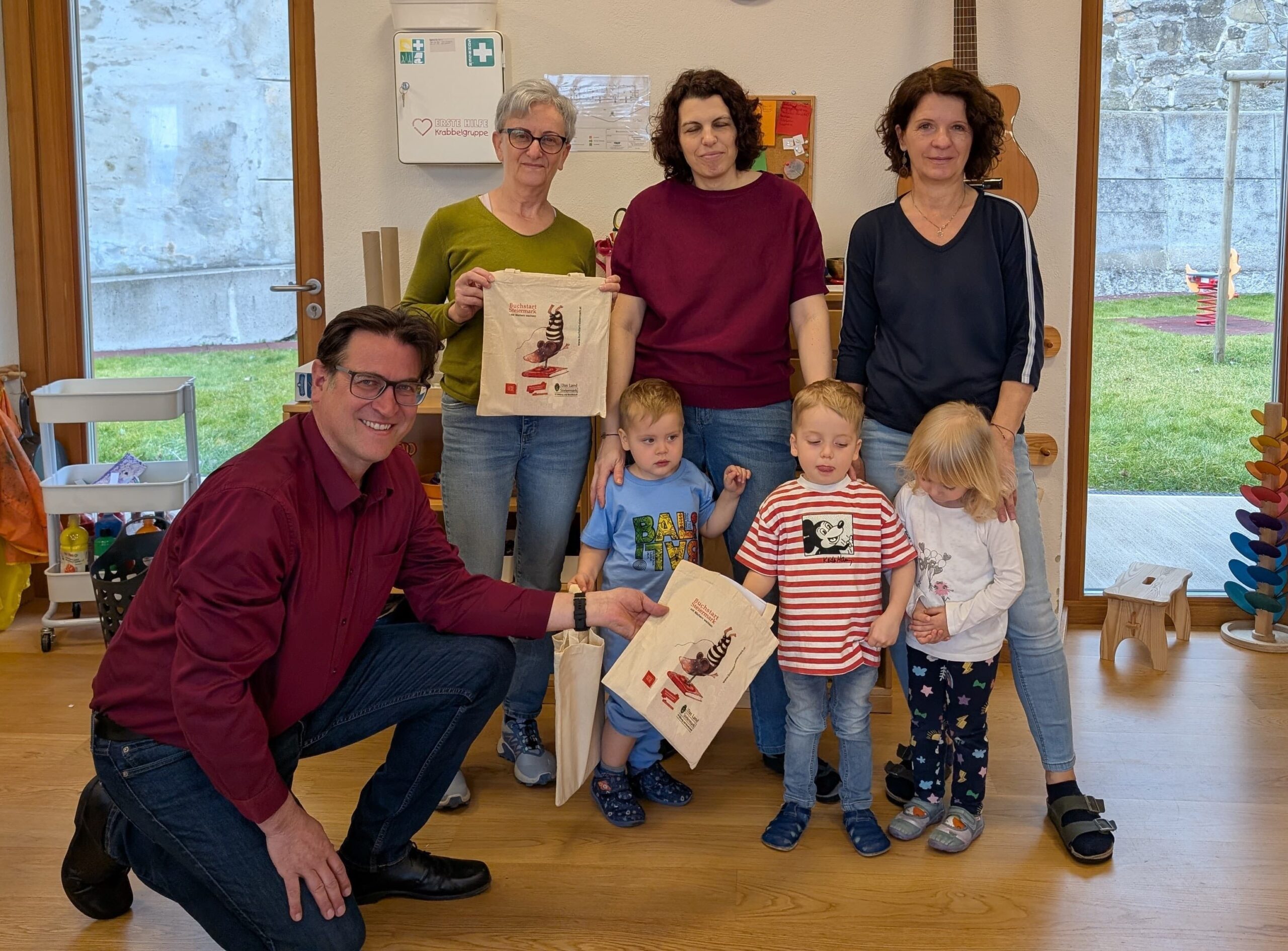 Familien mit Kindern im Alter von 6 bis 18 Monaten erhalten die „Buchstart Steiermark“-Tasche kostenlos und ausschließlich bei ihrem Besuch in den teilnehmenden „Buchstart Steiermark“-Bibliotheken.