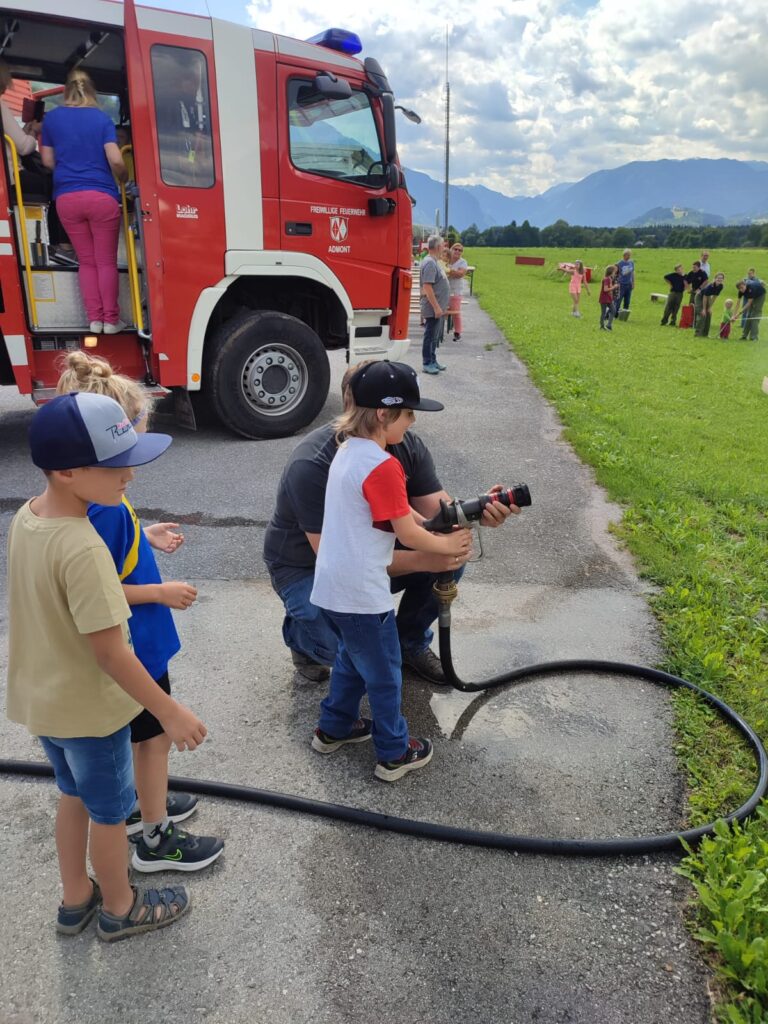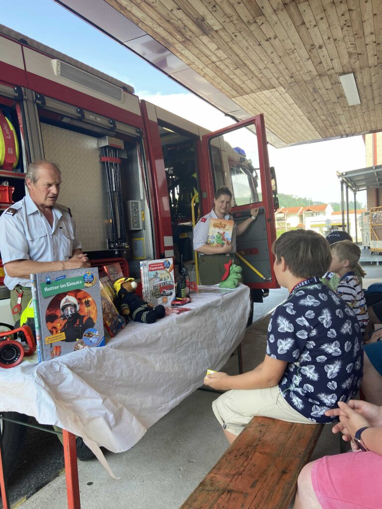 Zur Firma bzw. zum Verein passende Lektüre auswählen und im Anschluss eine Führung durch die Firma, den Bauernhof, die Alpakafarm oder das Rüsthaus, die Rot-Kreuz-Stelle etc. anbieten. Einmal in einem Feuerwehrauto zu sitzen oder mit dem Feuerwehrschlauch zu spritzen, lässt alle Kinderherzen höher schlagen.