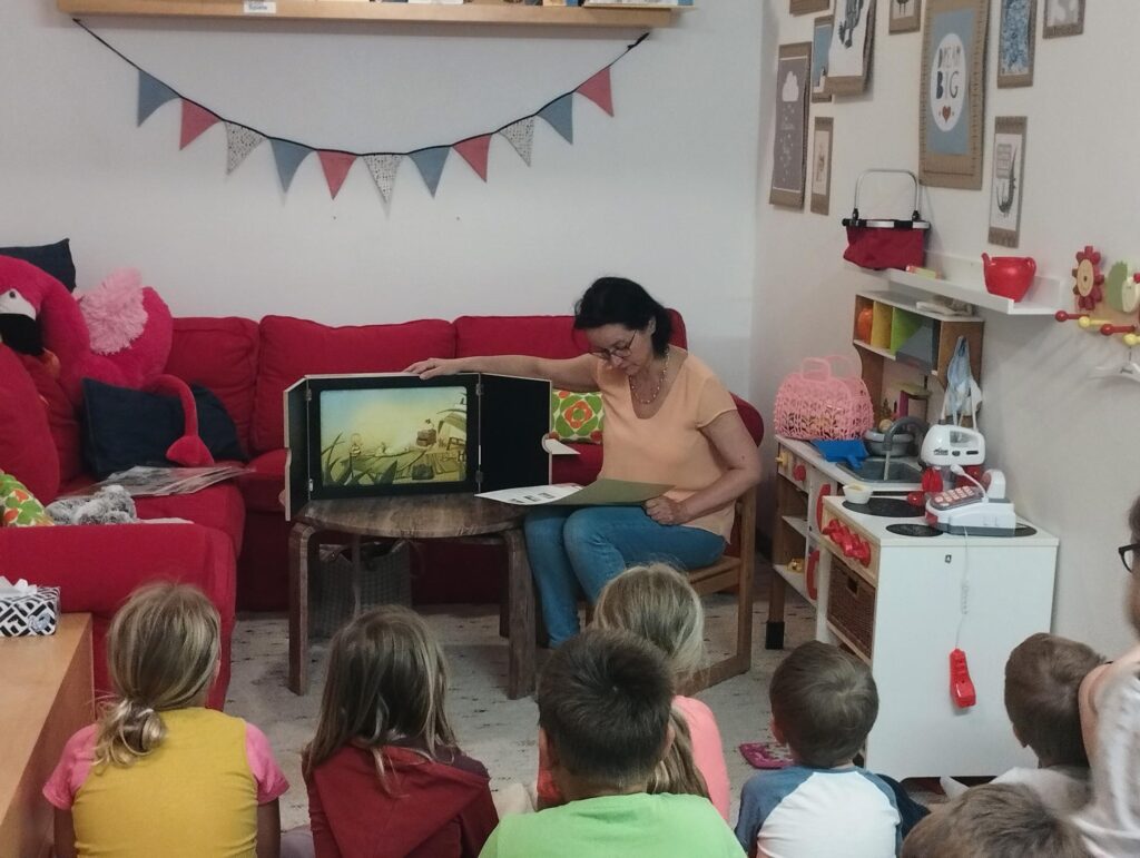 Sich auf das Wesentliche zu fokussieren – dabei hilft die aus Japan stammende Erzählbühne Kamishibai. Zu einigen Bilderbüchern gibt es die dazugehörigen Bildkarten für das Kamishibai. Öffentliche Bibliotheken, Kindergärten und Volksschulen verfügen teilweise über Kamishibais und die dazugehörigen Bildkarten.